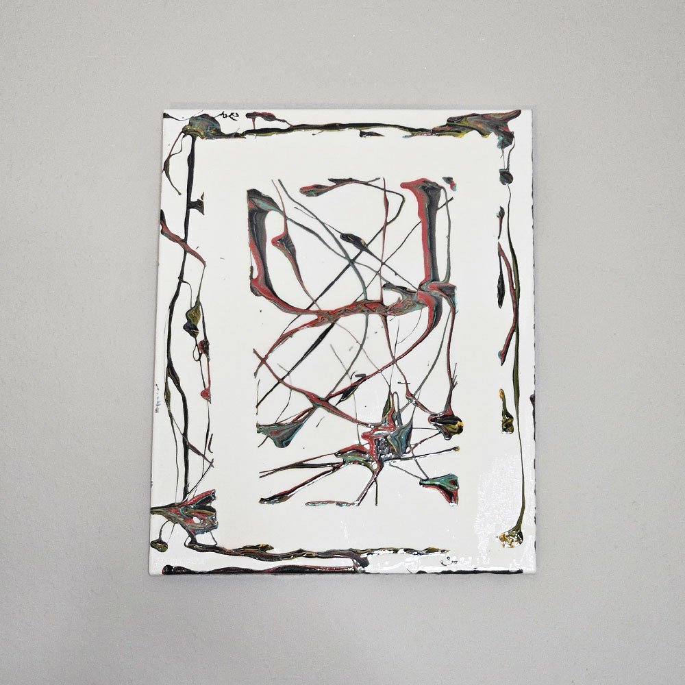 An abstract white canvas with flowing black, red, and green strokes—an energetic play of balance and freedom.